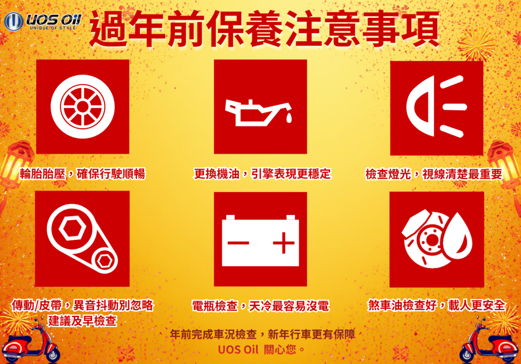 迎新年・汽車/摩托車保養指南|UOS Oil 貼心提醒